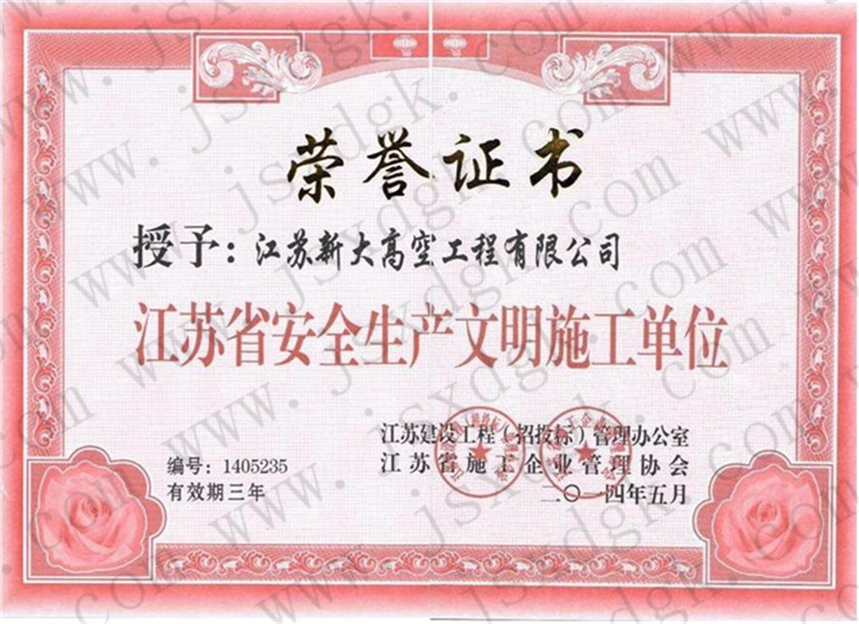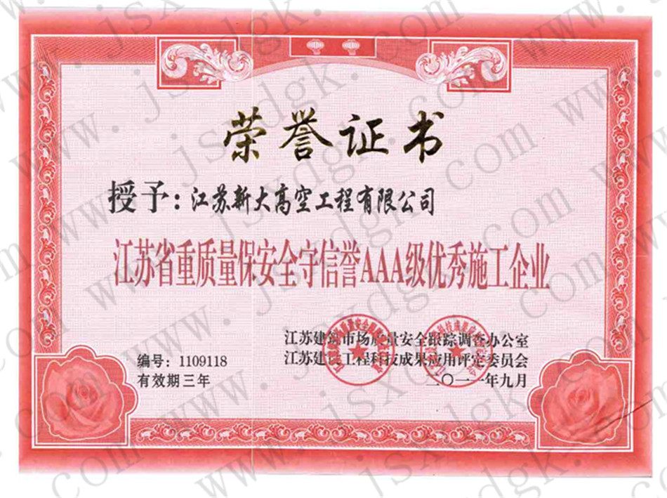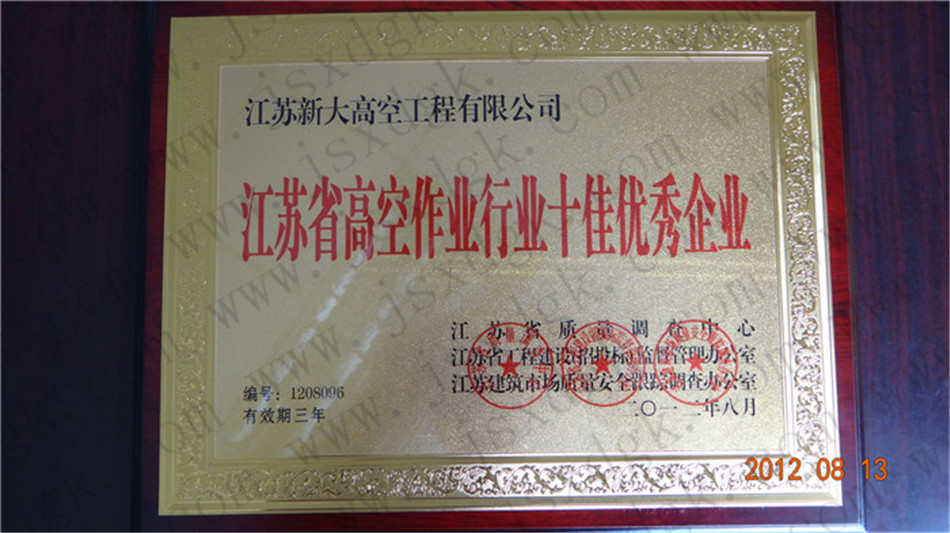 江蘇省高空行業(yè)五十強(qiáng)行業(yè)證書(shū)